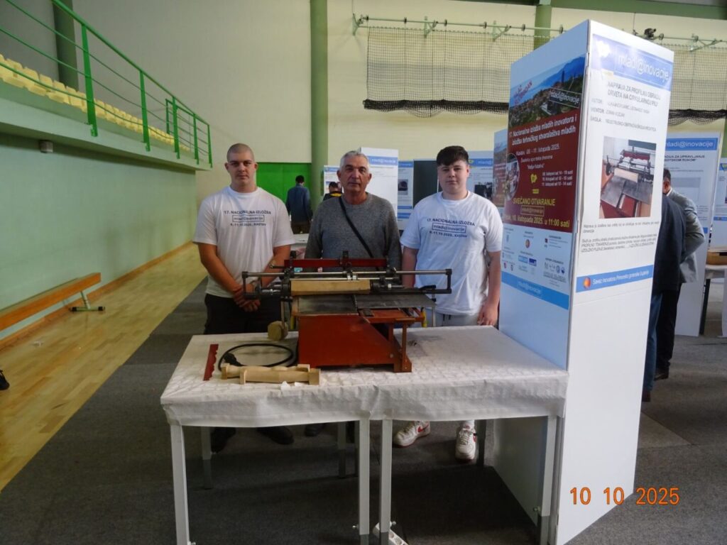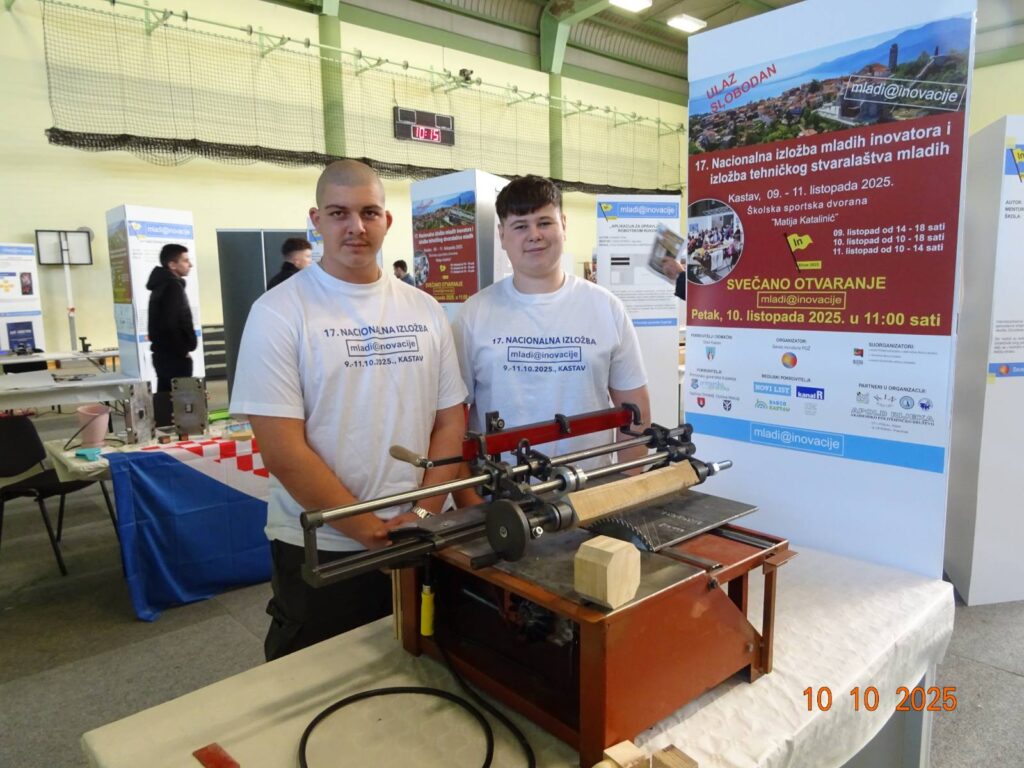 Luka i Leonardo, učenici drugog razreda smjera Instalater grijanja i klimatizacije, predstavili su inovativnu napravu za profilnu obradu drveta na cirkularnoj pili. Njihova naprava omogućuje preciznu i raznoliku obradu drva u gotovo svim potrebnim oblicima – kopirno tokarenje, piljenje pod različitim kutovima te izradu utora – i to na jednostavan i pristupačan način.