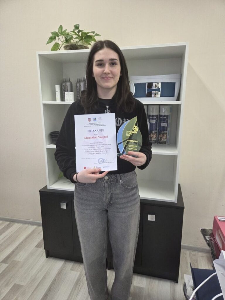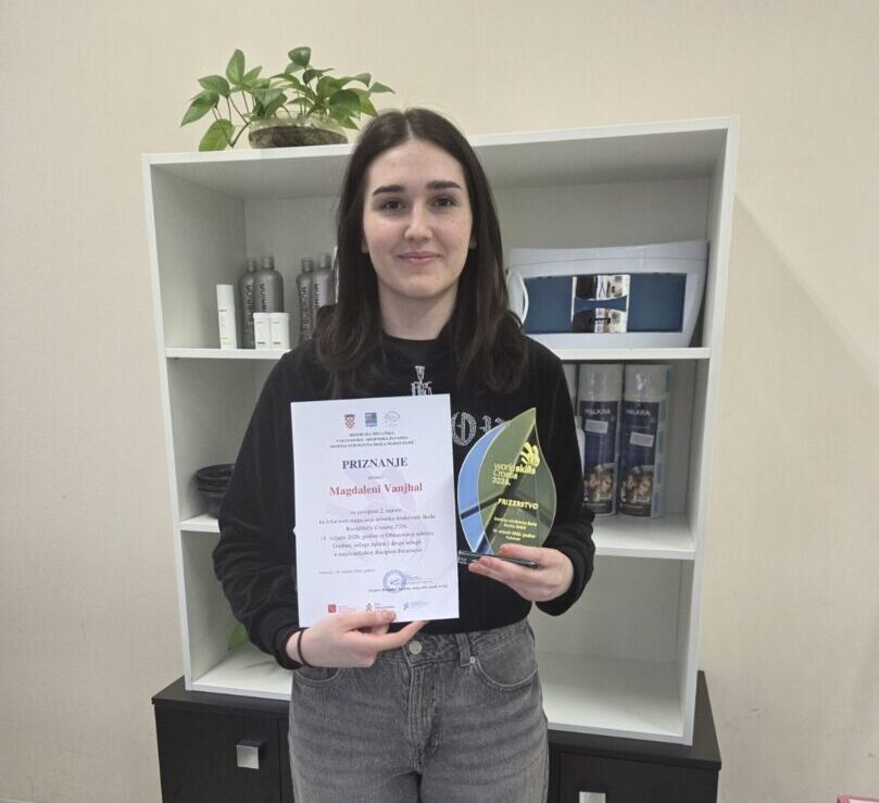 Na nedavno održanom izlučnom natjecanju WorldSkills Croatia 2026 u Vinkovcima, učenica trećeg razreda naše škole, Magdalena Vanjhal, ostvarila je izniman uspjeh osvojivši visoko drugo mjesto u disciplini frizerstvo.