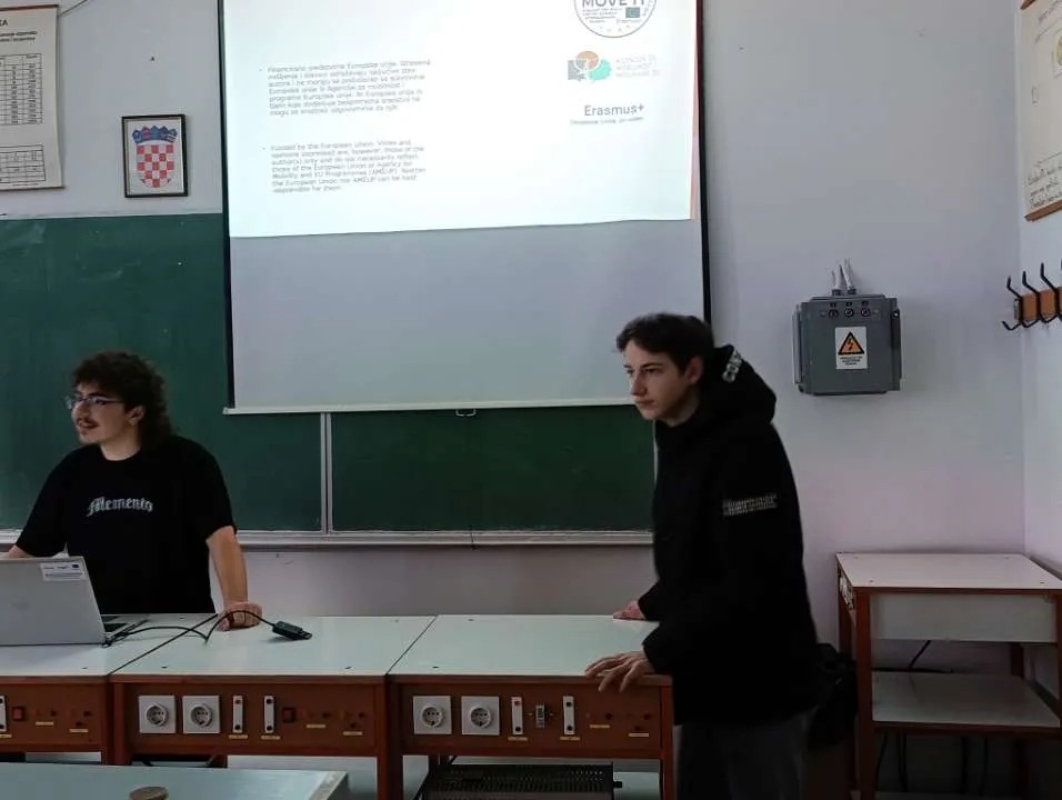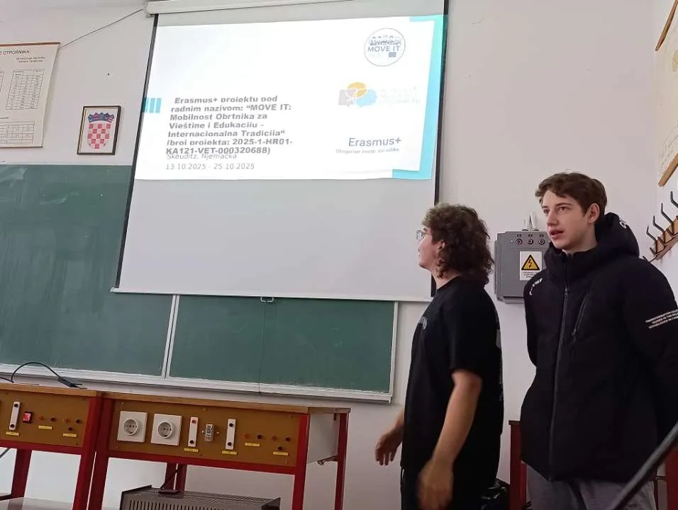 U petak, 23. siječnja 2026., učenici 2. razreda zanimanja stolar, Dominik Maresić i Mateo Gajšak, na satu razrednika održali su prezentaciju o kratkoročnoj mobilnosti u sklopu Erasmus+ projekta u području strukovnog obrazovanja i osposobljavanja, projekt broj 2025-1-HR01-KA121-VET-000320688, pod radnim nazivom „MOVE IT: Mobilnost Obrtnika za Vještine i Edukaciju – Internacionalna Tradicija“.
