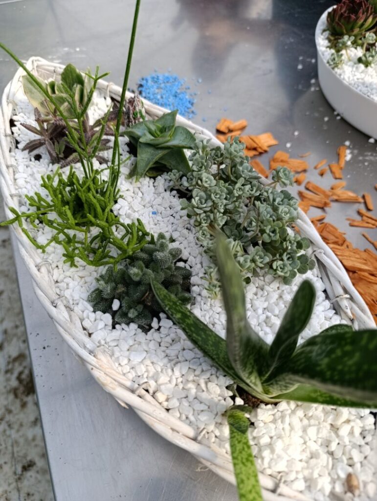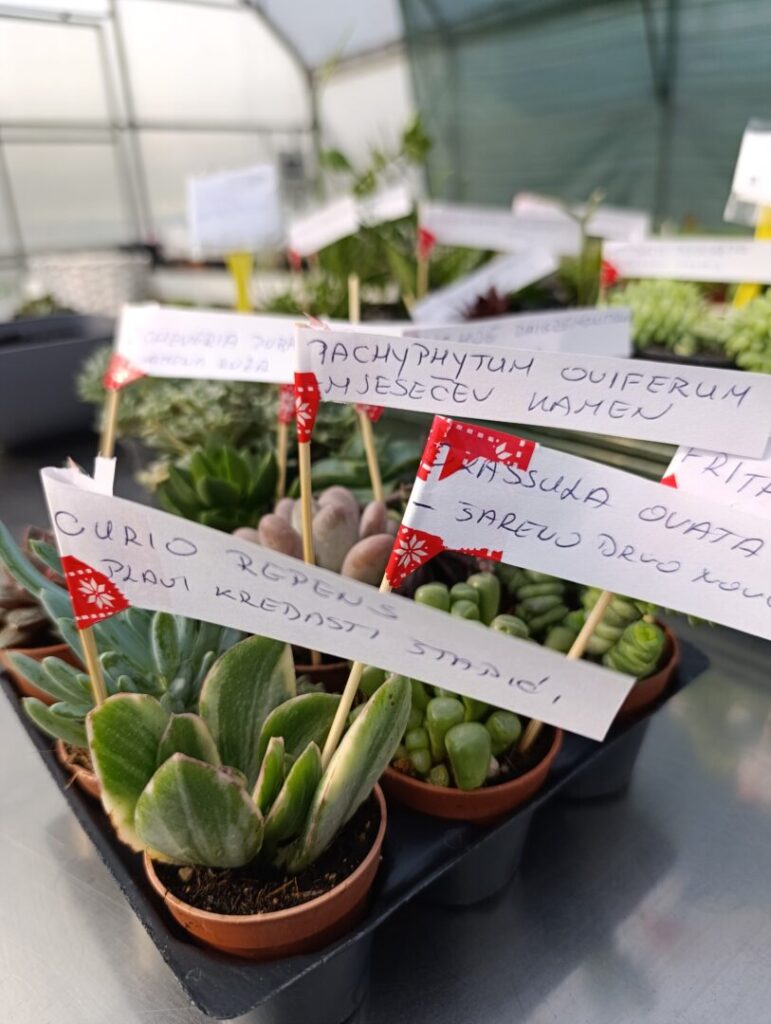 Tijekom rada koristile su različite vrste iz rodova Sempervivum, Echeveria, Sedum, Kalanchoe, Sansevieria, Crassula, Pachyphytum, Rhipsalis, Schlumbergera, Delosperma, Echinopsis i Gasteria. Ove biljke karakterizira sposobnost pohrane vode u listovima i stabljikama, što im omogućuje prilagodbu sušnim uvjetima i jednostavno održavanje.