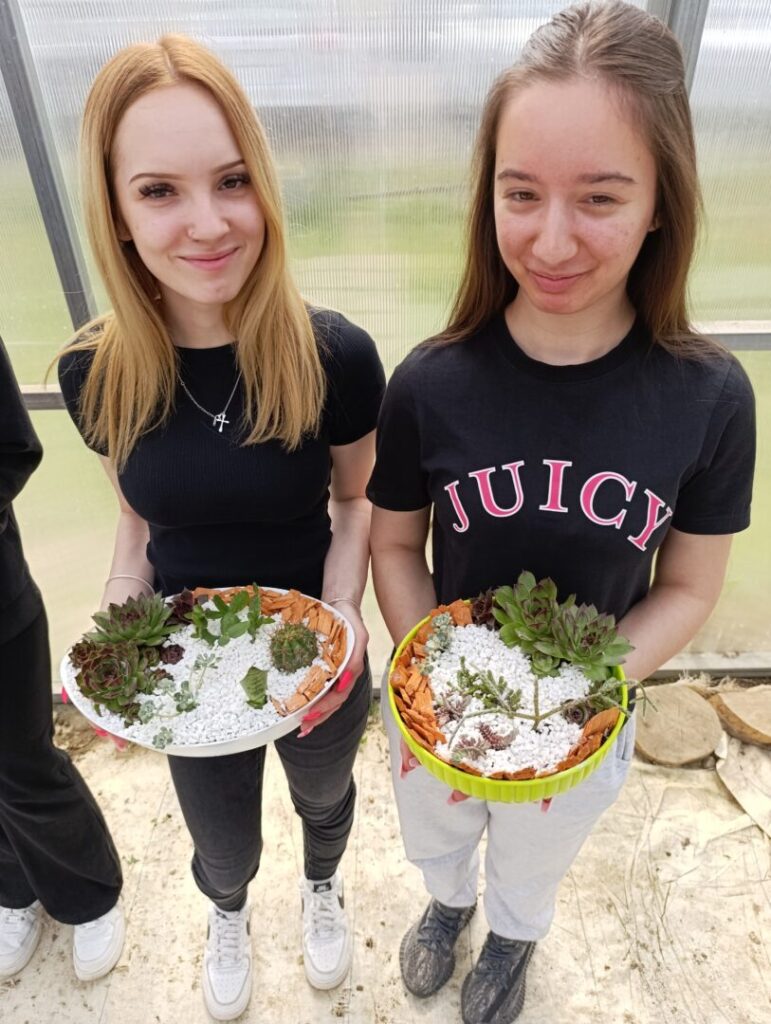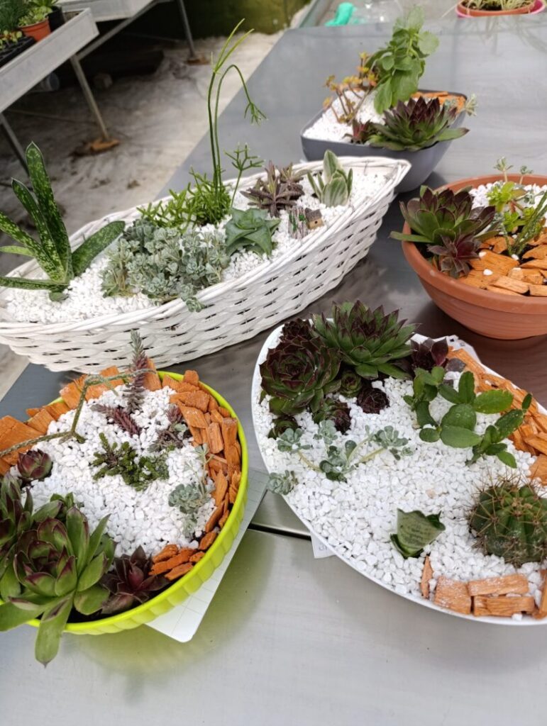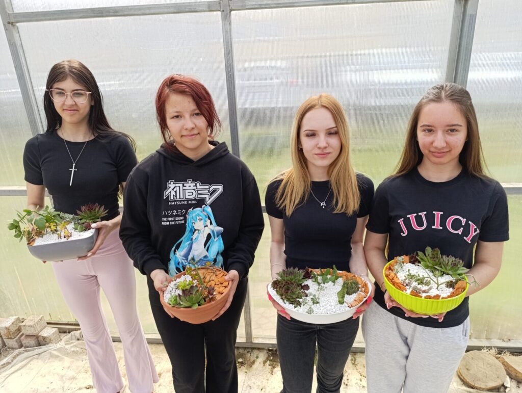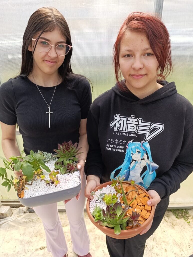 Učenice drugog razreda zanimanja cvjećar na satu cvjećarstva izrađivale su dekorativne sobne vrtove sa sukulentima i kaktusima, primjenjujući znanja stečena na teorijskoj nastavi.