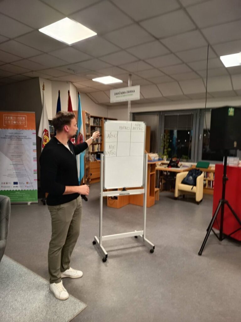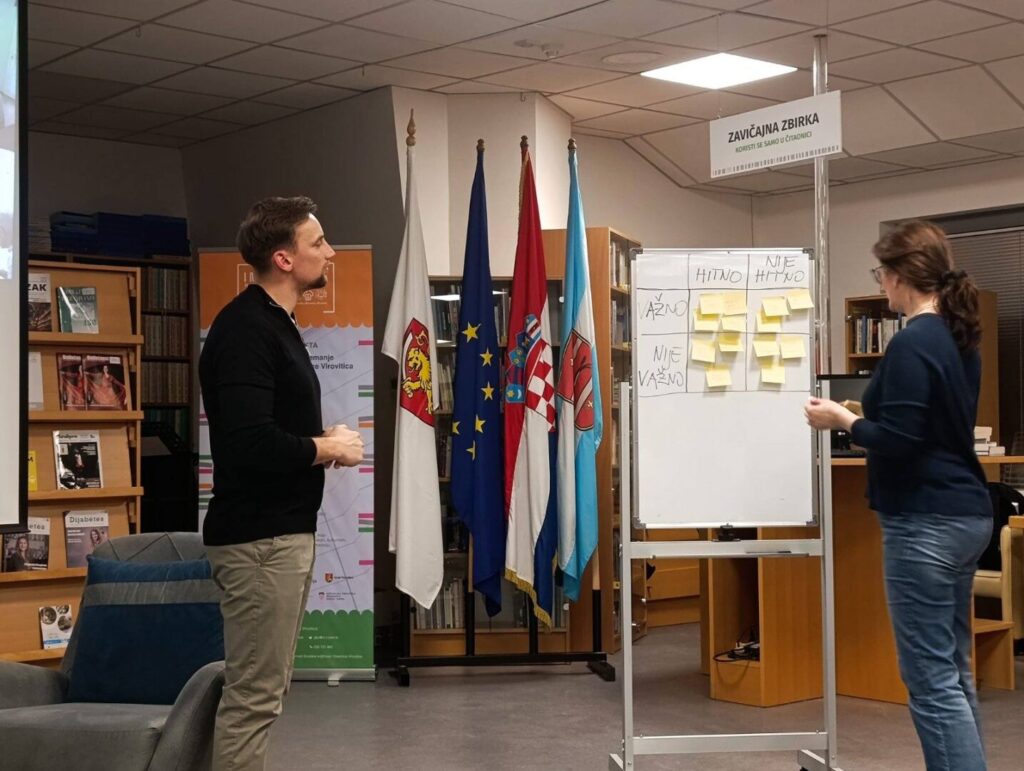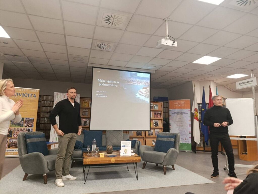 Dana 19.1.2026. naši su nastavnici Matija Jandrić i Ivan Vrbančić održali radionicu u Gradskoj knjižnici i čitaonici Virovitica kojom su prezentirali praktične vježbe za razvoj mekih vještina u poduzetništvu kao što su komunikacija, kritičko mišljenje, upravljanje vremenom i rad unutar tima. Polaznici su vježbali kako aktivno slušati, ne ometati govornika, prenijeti i primiti informaciju što točnije. Zatim su u obliku debate na zadanu situaciju branili suprotno stajalište od onoga za koje su se prvotno odlučili da bi razmišljali izvan “svog okvira” i stavili se u “tuđu kožu”.